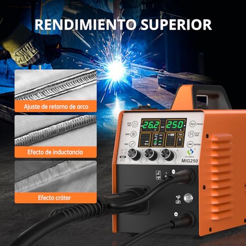 Uitgebreid metaallassen: de HITBOX MIG250 kan ijzer, roestvrij staal, koolstofstaal, cadmium-nikkelmetaal, cadmium koper metaal en aluminium magnesium metaal lassen. Voor betere naden ondersteunt de gasvrije soldeerbout ook voorstroom-/afstroominstellingen en 2T/4T-lasmethoden om aan je behoeften te voldoen. Opmerking: zonder grafietsonde.