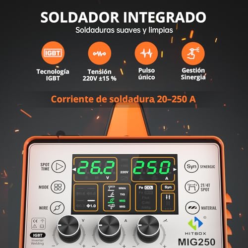 HITBOX 250 A permanente soldeerbout, 5-in-1, MIG-lasapparaat met inverter IGBT230 V, MIG TIG ARC, gelast aluminium