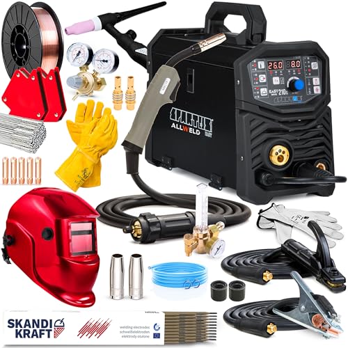 Spartus EasyMIG 210S – MIG/MAG 200A inverter soldeerstation – MIG-lasapparaat met gas en gevoerde draad, TIG en MMA – Inclusief twee lastoortsen (MIG/MAG en TIG-LIFT) – Professional Kit