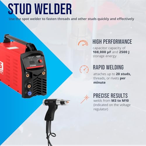 Stamos Germany puntlasapparaat 108000 µF condensatorcapaciteit 2500 J opslagenergie piekontsteking 20 bout/min lasbereik M3 – M10 LED-display boutlasapparaat boutlasapparaat